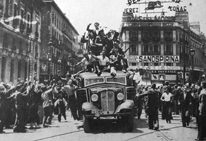 Desfile militar en conmemoración del quinto aniversario de la República. Último gran acto unitario antes del conflicto. |